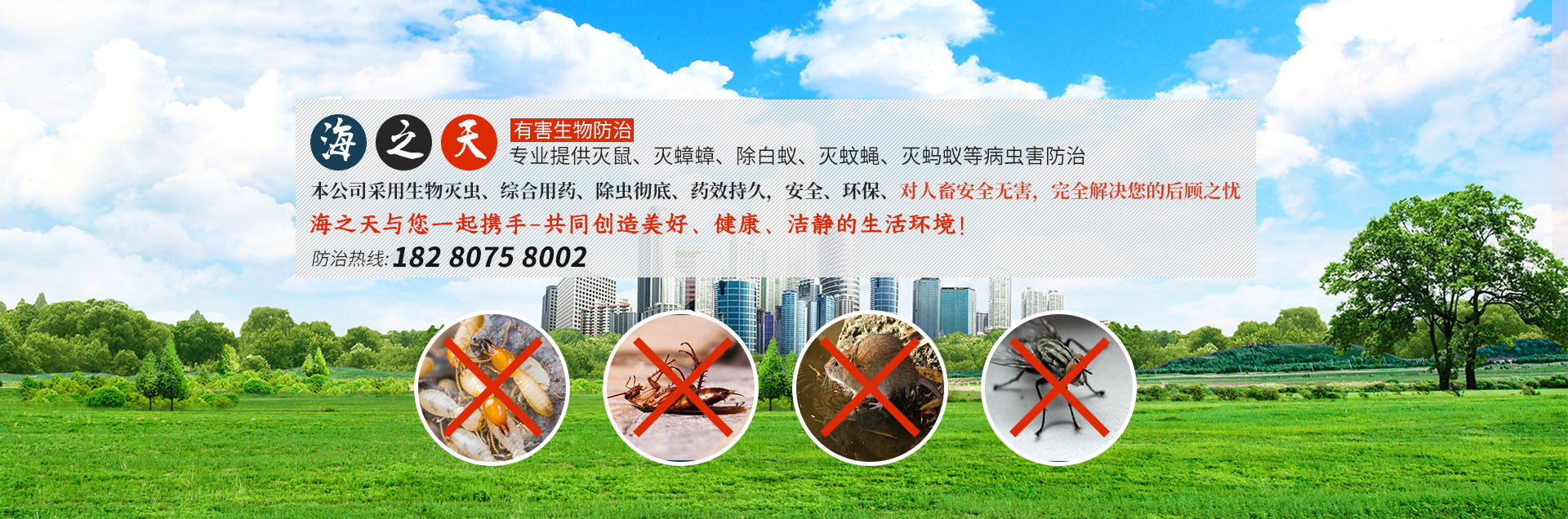 四川海之天有害生物防治有限公司坐落于美麗的科技城綿陽,公司老板從事本行業(yè)十余年,有著豐富的經(jīng)驗和專業(yè)的團隊。本公司使用的藥物,均系經(jīng)國家藥檢部門和衛(wèi)生防疫部門批準(zhǔn)的安全、低毒的城市衛(wèi)生用藥,并根據(jù)具體作業(yè)環(huán)境和防制對象,選取適宜的器械藥劑、使用專業(yè)的藥物,制定具體防制方案,以確保好的防治效果。內(nèi)、外環(huán)境所用藥物:安全、低毒、無味無刺激、環(huán)保、高效果、無污染,對住宿的賓客,門診、住院的病人,學(xué)習(xí)、辦公的人員,都沒有不良刺激,特別適用于追求高質(zhì)量環(huán)境的賓館、飯店、醫(yī)院、機關(guān)、學(xué)校等場所!   經(jīng)營項目:全市范圍內(nèi)即周邊城市的大型工廠、工業(yè)園、社區(qū),山莊,度假村,旅游景點,賓館、飯店,公寓、寫字樓、醫(yī)院、政府機關(guān)、餐飲業(yè)、食品加工業(yè)、倉儲等各企事業(yè)單位上門消殺服務(wù),綜合治理,可以選擇一次用藥或包年服務(wù),以合理的費用提供更好的服務(wù),讓我們一同攜手,共同創(chuàng)造美好、健康、潔靜的生活環(huán)境!   我們的理念:本公司采用生物滅蟲、綜合用藥、除蟲完善、藥效持久,安全、環(huán)保、對人畜安全無害,解決您的后顧之憂。本公司提供專業(yè)技術(shù)人員免費上門檢查白蟻、害蟲服務(wù)!公司在國家規(guī)定節(jié)假日照樣安排有技術(shù)人員正常上班,歡迎拔打熱線咨詢18781110022